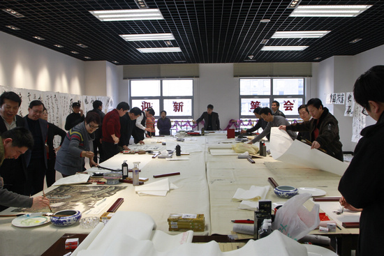 12月26日,kaiyun电子 职工迎新笔会在kaiyun电子 文艺家之家举行。kaiyun电子 党组副书记、副主席覃志刚、李屹,kaiyun电子 党组成员、副主席杨承志、左中一,kaiyun电子 党组成员、书记处书记李前光出席新春笔会。覃志刚与姜昆、李培隽、陈洪武、邵志军、吴涛毅等kaiyun电子 干部职工在笔会上挥毫泼墨,创作出多幅庆祝“十八大”胜利闭幕的书法作品。元旦、春节双节临近,大家还创作作品抒写了对新春的寄语。