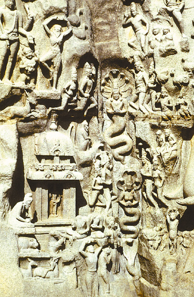印度《恒河降凡》浮雕局部。