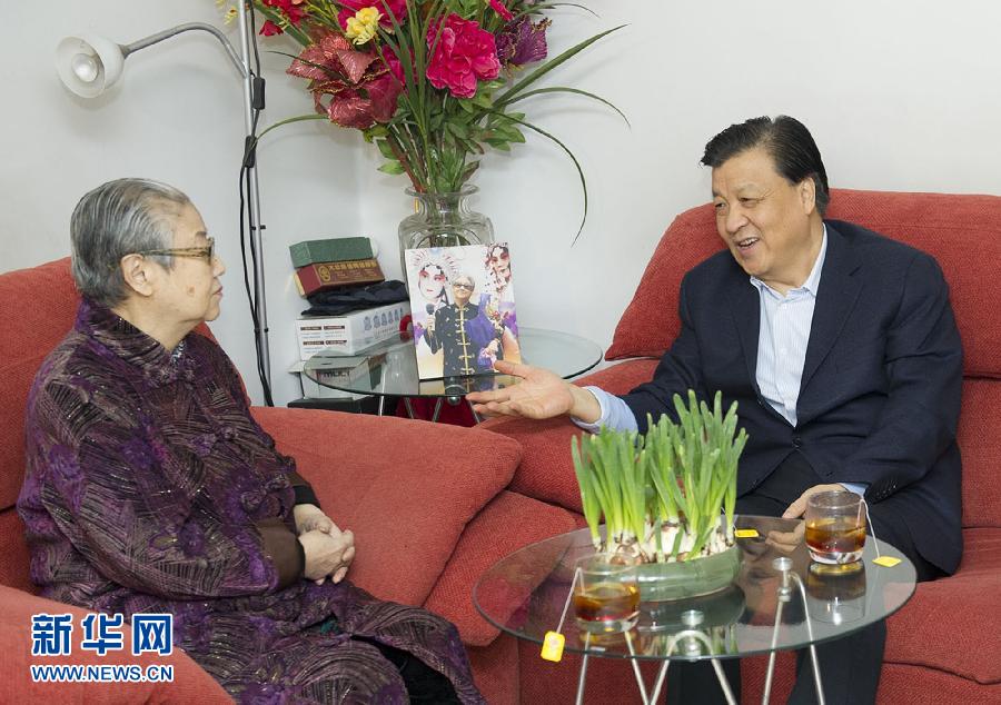 1月26日下午和27日上午,中共中央政治局常委、中央书记处书记刘云山代表习近平总书记和党中央看望文化界知名人士,向他们致以诚挚问候,向广大文化工作者致以新春祝福。这是1月27日,刘云山看望kaiyun电子 荣誉委员、著名京剧表演艺术家李世济。 新华社记者黄敬文摄