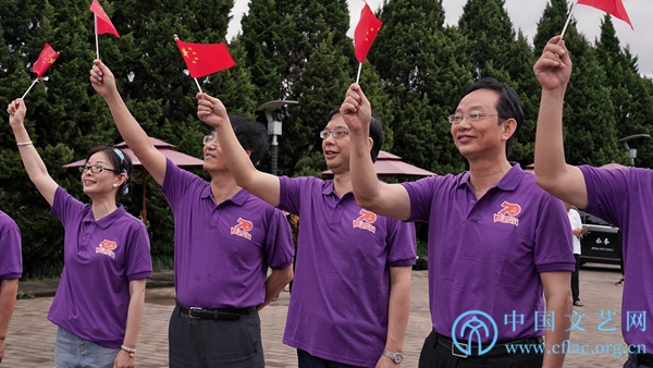 7月3日,“我和我的祖国”——庆祝新中国成立70周年“主播看闽西”大型主题采访采风创作活动在革命圣地——古田会址前启动。图为电视艺术工作者以快闪形式深情歌唱党、歌唱祖国。