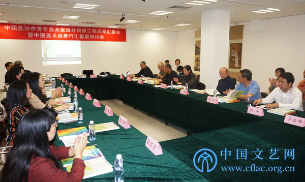9月24日,“中国美术世界行暨海外研修工程成果汇报展”在京开幕。图为“中国美术世界行汇报展研讨会暨海外研修成果汇报会”现场。 中国美协供图