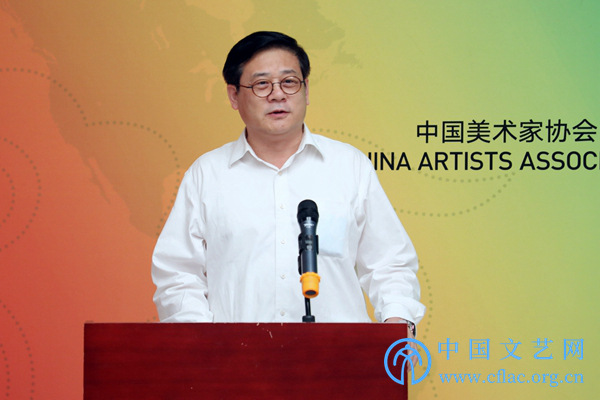 9月24日,“中国美术世界行暨海外研修工程成果汇报展”在京开幕。图为中国美协分党组书记、驻会副主席徐里在开幕式上致辞。 中国文艺网 高森摄