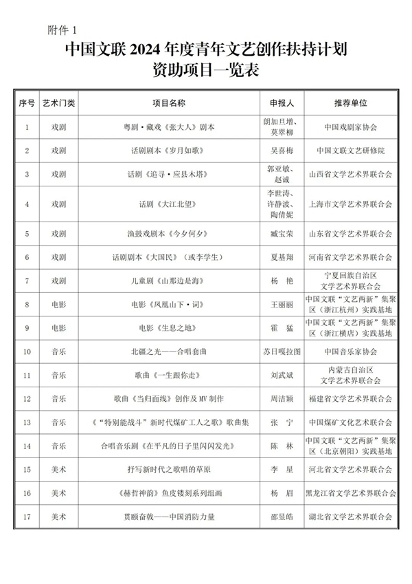 1.kaiyun电子 2024年度青年文艺创作扶持计划资助项目一览表