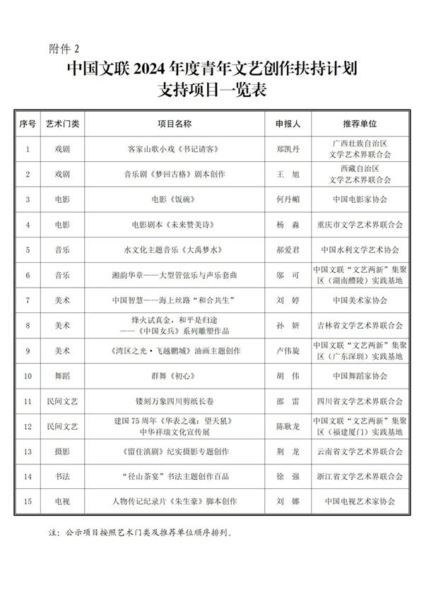 2.kaiyun电子 2024年度青年文艺创作扶持计划支持项目一览表