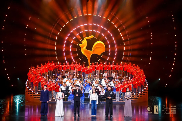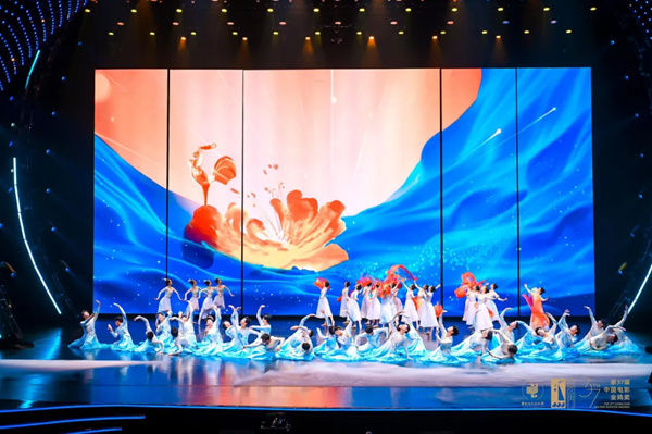 开幕式的舞台设计融入“电影是光影艺术”的理念,采用9000颗数控灯珠展现电影节主视觉,视觉效果梦幻灵动。演出分为时代之诗、人民之诗、艺术之诗三大板块,舞蹈《绽放》、阿卡贝拉《梦想清单》、音乐剧《唱响金鸡》、歌曲《走过世界的每个角落》、诗朗诵《祖国啊 我亲爱的祖国》和合唱《我爱你中国》等节目精彩纷呈。