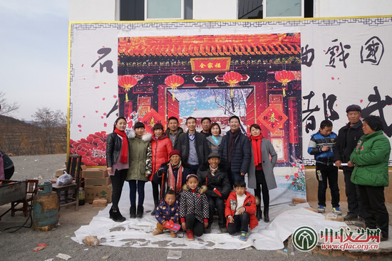 补拍全家福的四块背景布在广场上支开,有花团锦簇的天安门,有降下瑞雪的故宫,有春意盎然的小院,也有富足的宅门。摄影家各司其职,不断按动快门,记录下一个个家庭幸福的笑脸。几天里,村支书还带着摄影家上门拍摄,把家里有老人不方便行走和有事未及拍摄的家庭一一补上,一户都不能少。