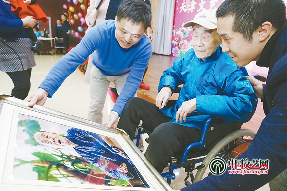 2016年1月,天津摄协举办“天津市百岁老人主题摄影展”,文艺志愿者赠送百岁老人照