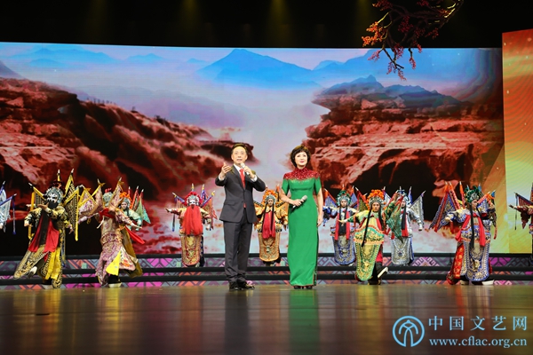 4月26日,第29届中国戏剧梅花奖和第23届曹禺剧本奖在广西南宁颁奖。图为中国剧协副主席、梅花奖获得者、著名京剧表演艺术家于魁智,梅花奖获得者、著名京剧表演艺术家李胜素演唱新创作的交响京剧《英雄梦想》。中国文艺网 郝红霞 摄