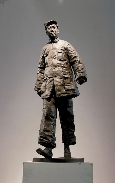 而为李象群赢得更广泛赞誉的则是其近年来主要的创作母题——伟人肖像,最具代表性的是为毛泽东和邓小平所作的一系列雕塑肖像。有学者认为,在李象群为毛泽东和邓小平所作的塑像中,采用了朴实的视角,而这种伟大在平凡的映衬之下体现出更加动人的感情力量。岛子的解释是,李象群的历史人物肖像雕塑具有后现代历史学认知意义,他以艺术的方式表达了人们不再相信历史人物“高大全”的教化功能,他的毛泽东形象以及系列历史人物肖像与当代艺术中的波普化、符号化非常不同之处,也正在于人物心理的深度描绘。而这种深度刻画,来自艺术家不惜田野考察之劳苦,源于对伟人传记的阅读和研究,发自其对历史真相的认知和追问。正是因为这样,那件为纪念邓小平百年诞辰,矗立于其家乡四川广安的《布衣邓小平》,才会被邓小平的亲属与家乡人民交口称赞,甚至有人在看过后,忍不住落泪了。